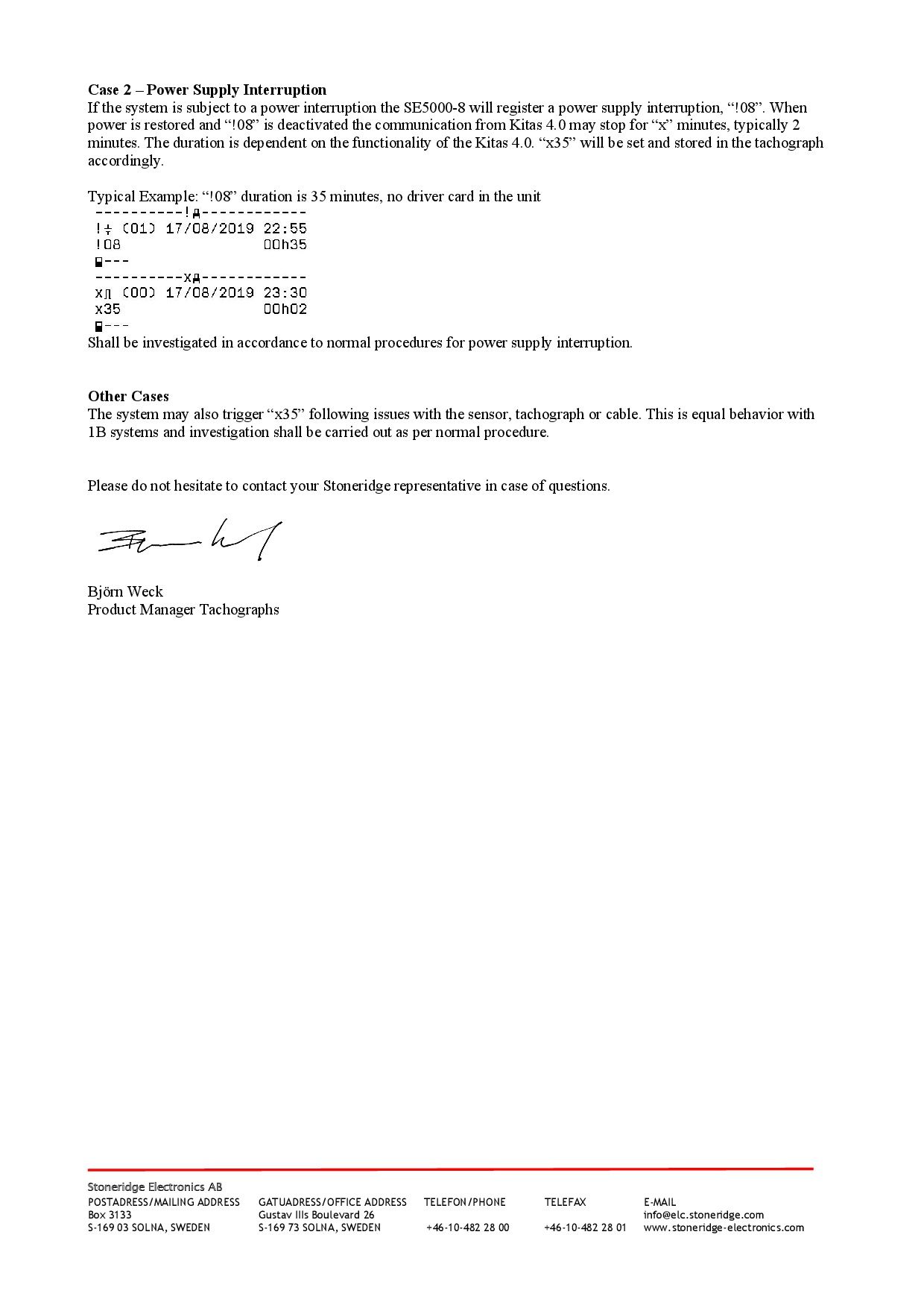 COMUNICADO STONERIDGE ERRORES TACÓGRAFO