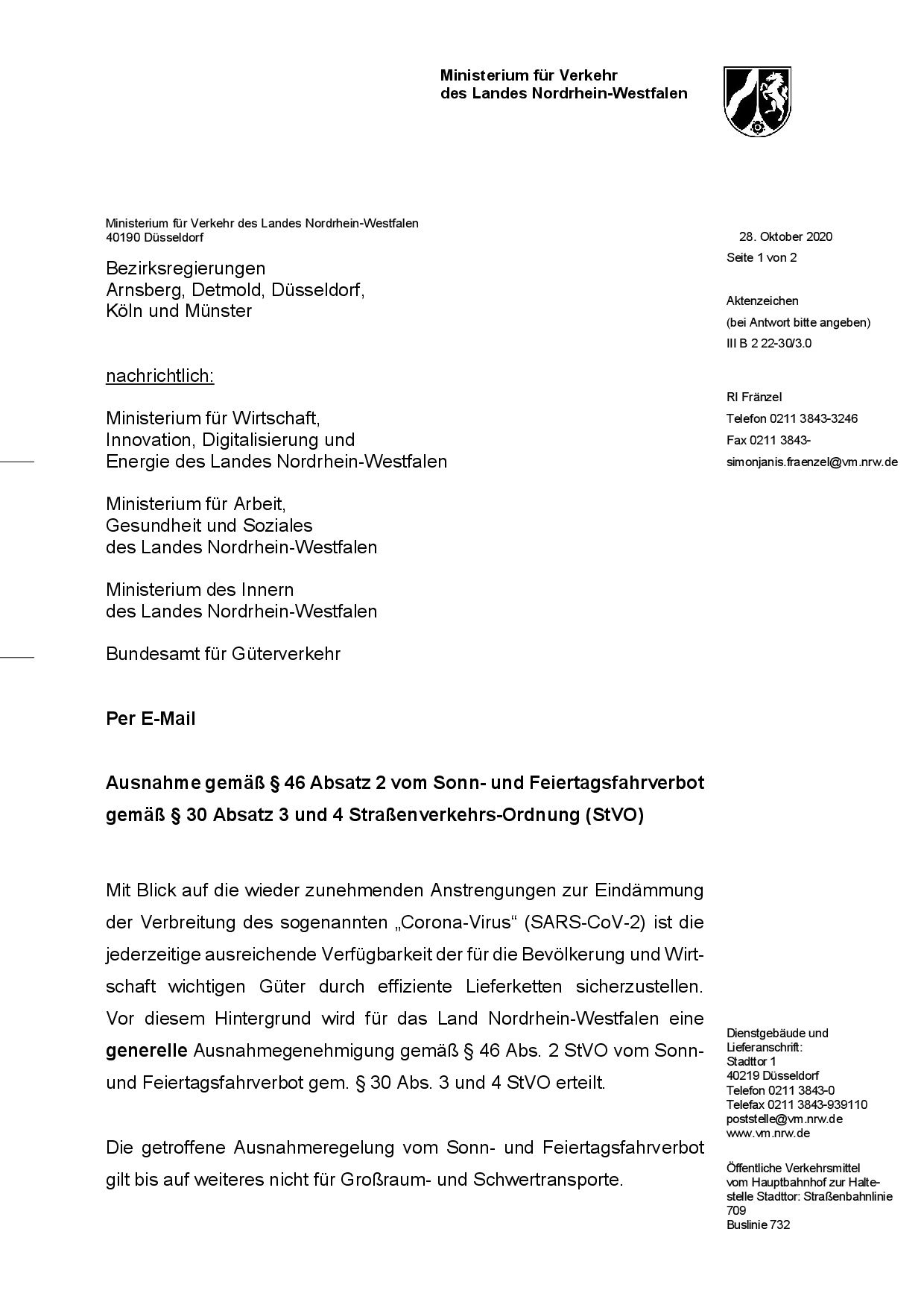 Véase la carta adjunta del Ministerium für Verkehr des Landes Nordrhein-Westfalen.
