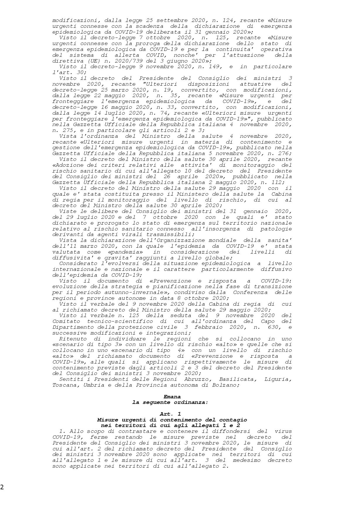 A partir del 11 de noviembre, el Ministerio de Salud ha clasificado áreas adicionales de alto riesgo epidemiológico como “escenario típico 3” (las llamadas zonas naranjas) y “escenario tipo 4” (las llamadas zonas rojas), según lo dispuesto por DPCM. 3.11.2020.