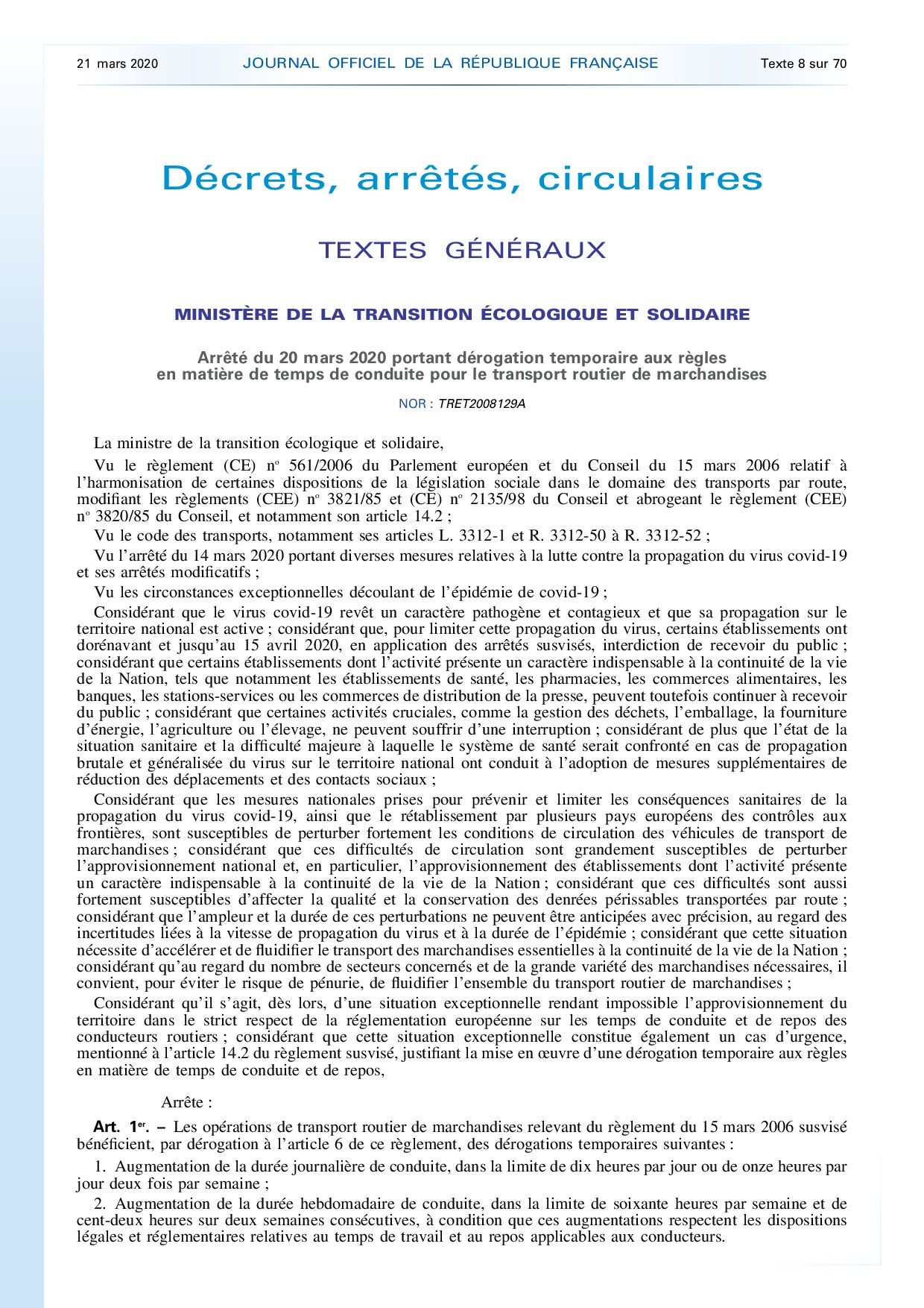 PD: LE RECORDAMOS QUE, SEGÚN SE LEE EN LOS ANTERIORES FLASHES INFORMATIVOS, LAS RESTRICCIONES DE FIN DE SEMANA EN LAS CARRETERAS FRANCESAS HAN DEJADO DE REGIR TEMPORALMENTE Y QUE, TAMBIEN EN DICHO PAÍS, SE HAN DICTADO NORMAS DE FLEXIBILIZACIÓN DE LOS TIEMPOS DE CONDUCCION Y DESCANSO -adjuntamos copia del decreto que lo establece.