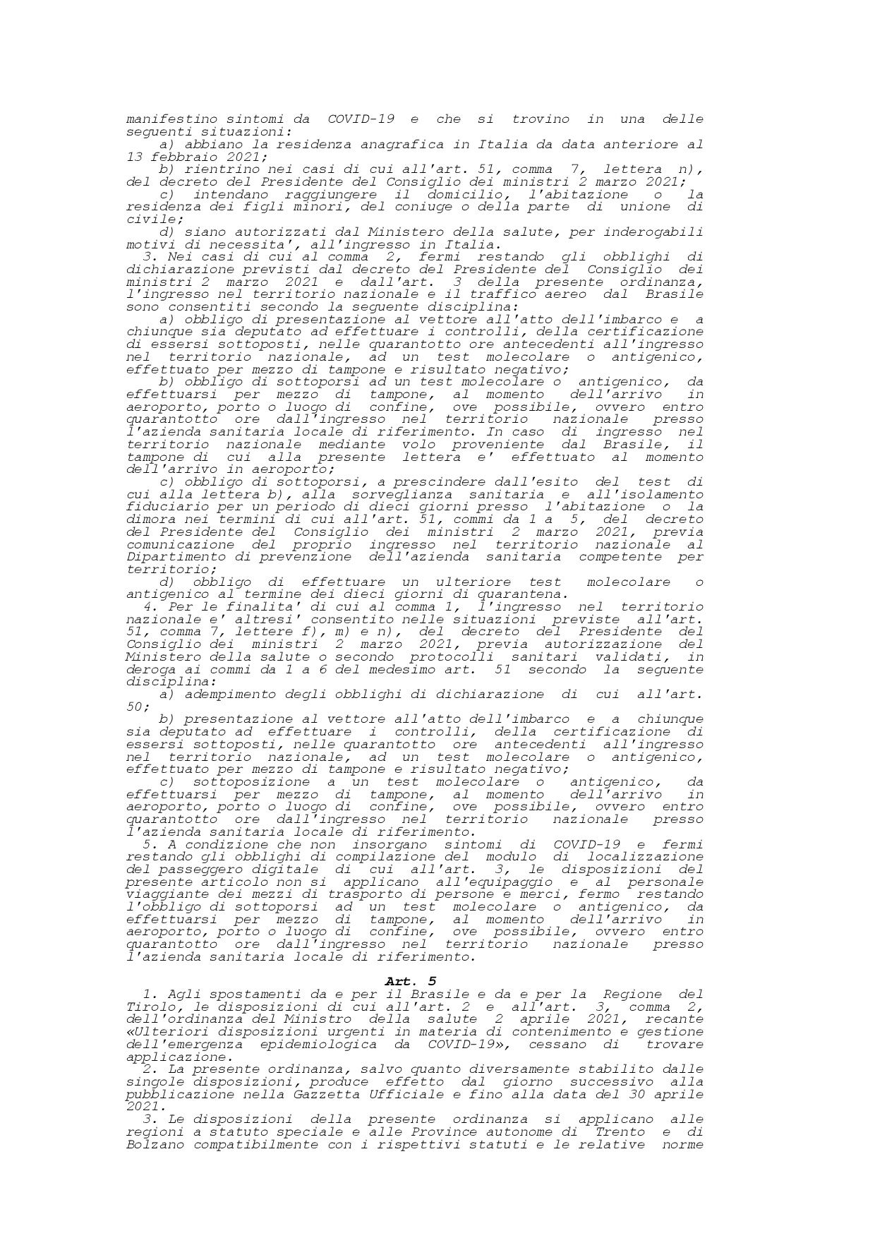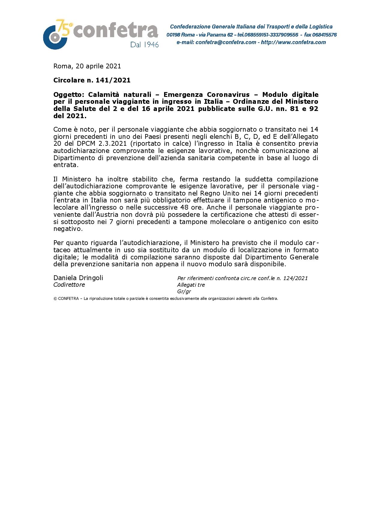 - En el caso de entrada a Italia de personal viajero que haya permanecido o transitado en los 14 días anteriores en uno de los países presentes en las listas B, C, D y E del Anexo 20 del Decreto del Primer Ministro (adjunto), es necesario elaborar una autodeclaración que acredite las necesidades laborales y comunicar el ingreso al Departamento de Prevención de la empresa sanitaria competente en función del lugar de ingreso;