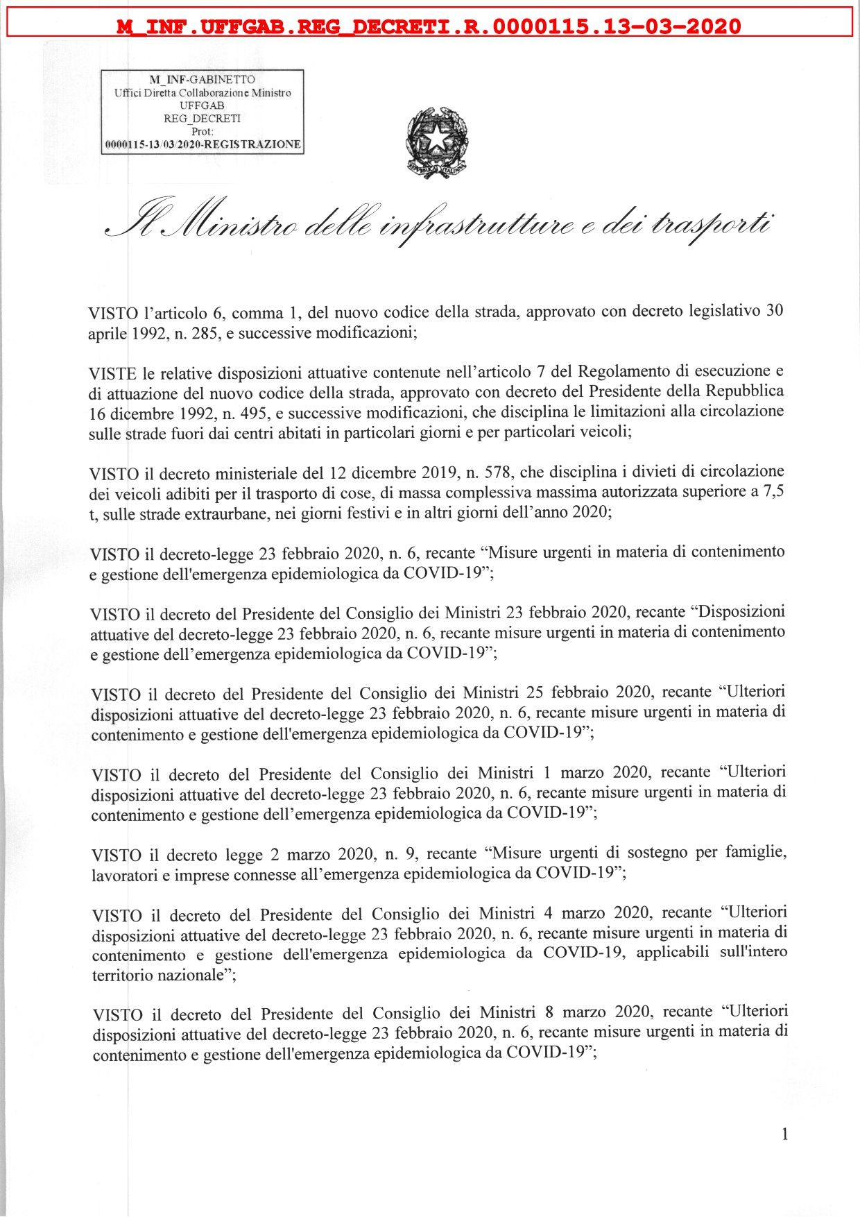 El Ministerio italiano de Infraestructura y Transporte firmó un decreto que suspende las prohibiciones de tráfico para vehículos pesados con una masa total máxima superior a 7,5 toneladas, en carreteras extraurbanas, los días 15 y 22 de marzo de 2020, limitado a vehículos que realizan servicios de carga internacional, hasta nueva comunicación. El texto del decreto está disponible en el archivo anexo.
