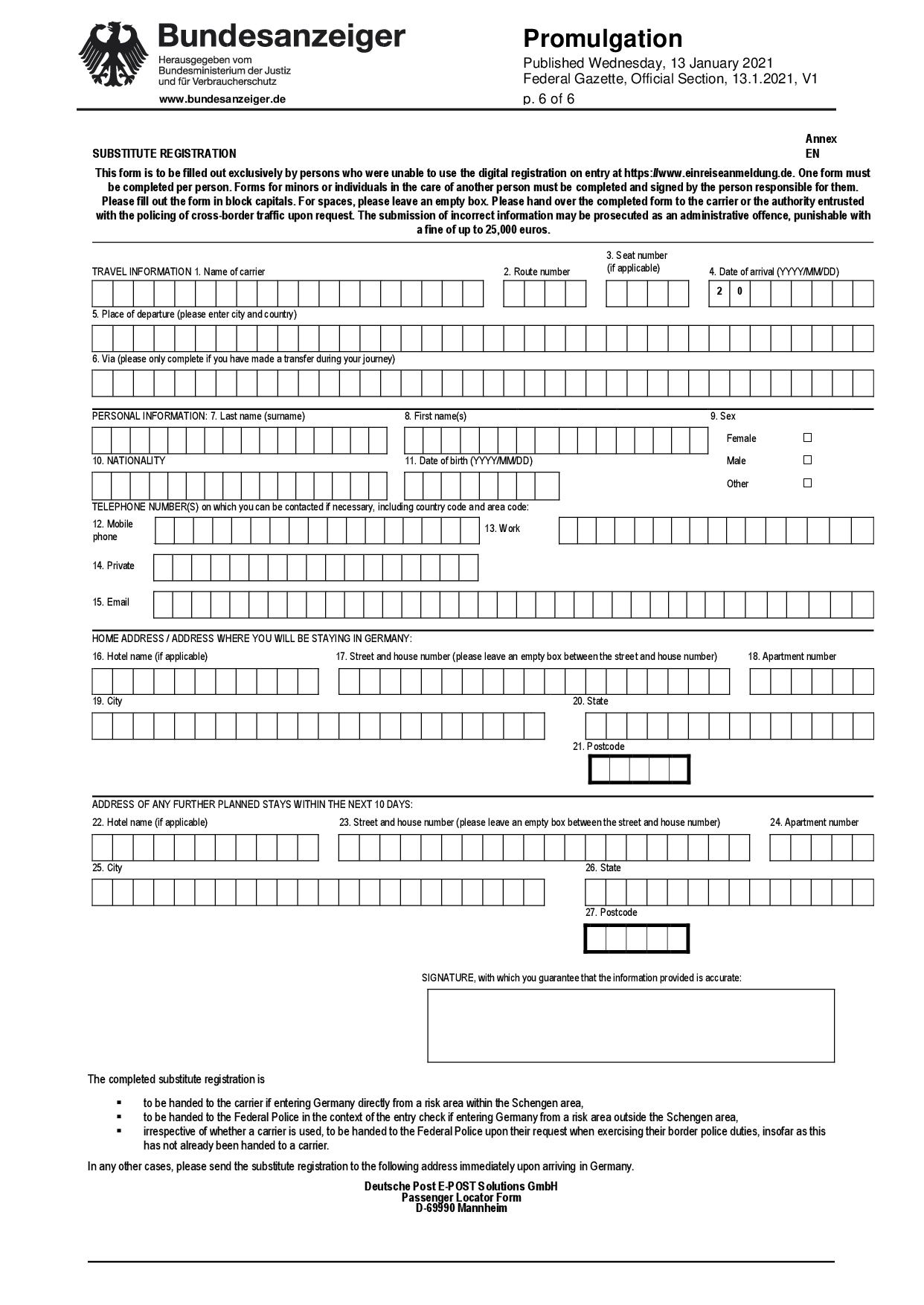 No hay ninguna exención del requisito alemán de pruebas y registro para los conductores que solo transitan por Moselle o cualquier otra área considerada "variante de preocupación".