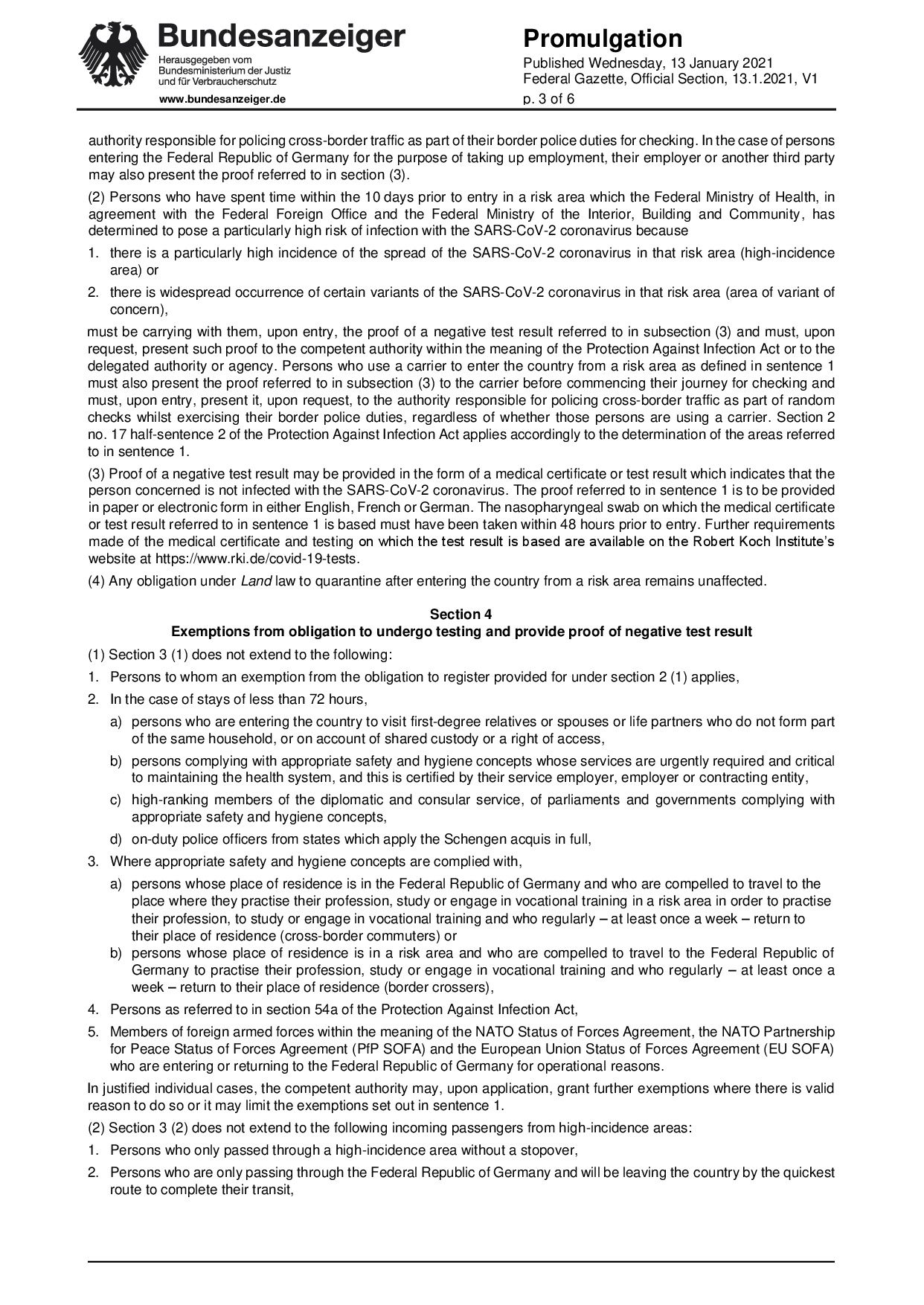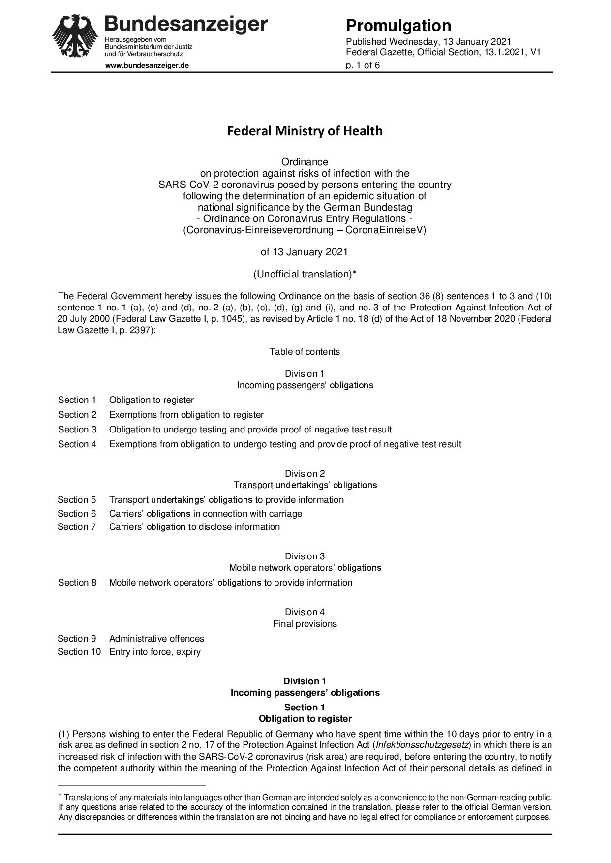 BGL ha recibido informes sobre una posible interpretación oficial en Francia de las reglamentaciones alemanas relativas a "áreas de variante de interés", a saber, el departamento francés de "Mosela". Se informó a BGL de que, según esa interpretación francesa, "quienes transitan por la región del Mosela sin cargar y descargar no están cubiertos por la obligación de realizar pruebas y registrarse antes de entrar en Alemania".