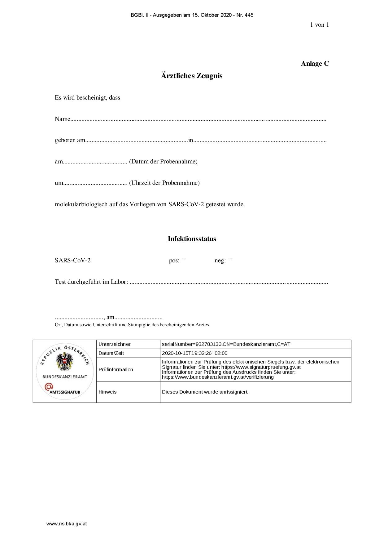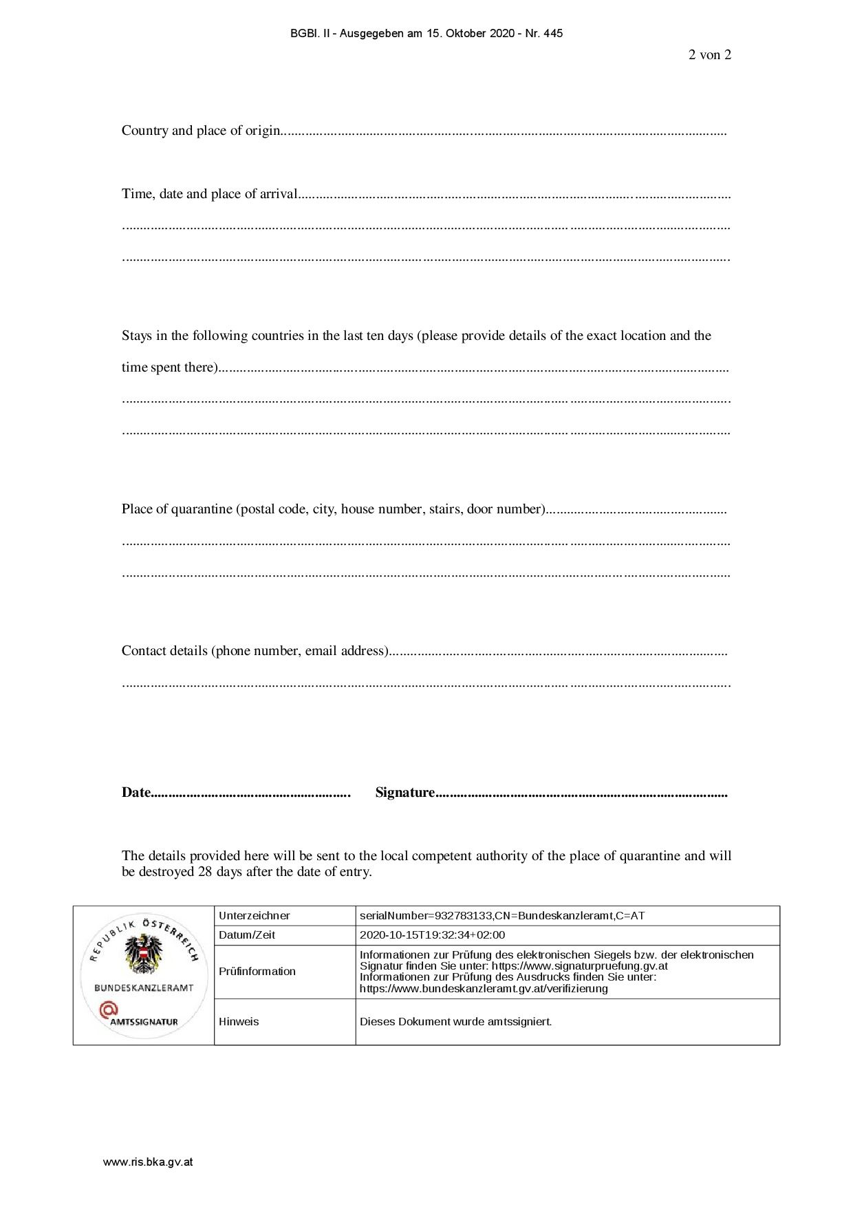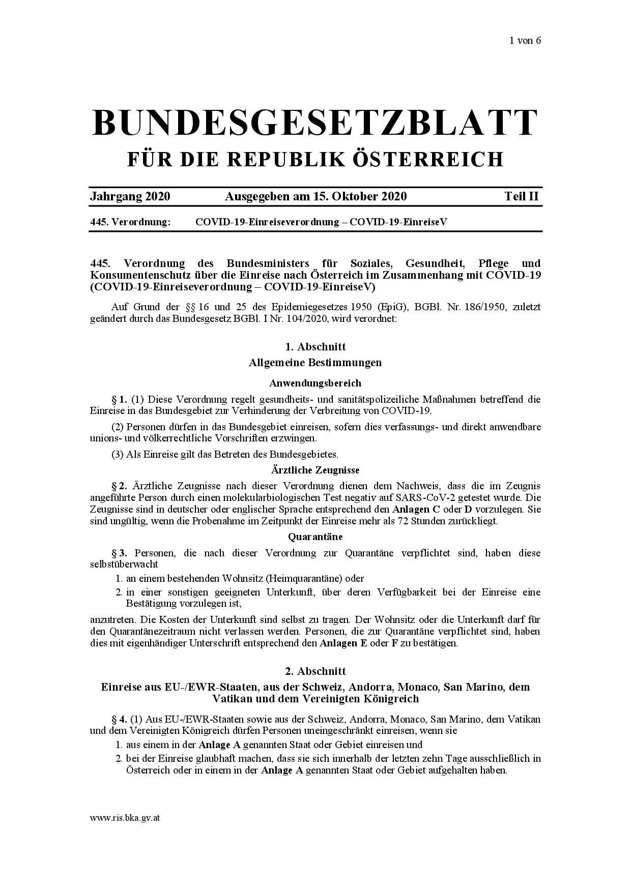 El Diario Oficial Federal (Bundesgesetzblatt) de Austria ha publicado (15 de octubre de 2020) un nuevo reglamento del Ministro de Asuntos Sociales, Sanidad y Protección del Consumidor, relativo a las nuevas normas relacionadas con el COVID-19 para quienes entran en Austria.