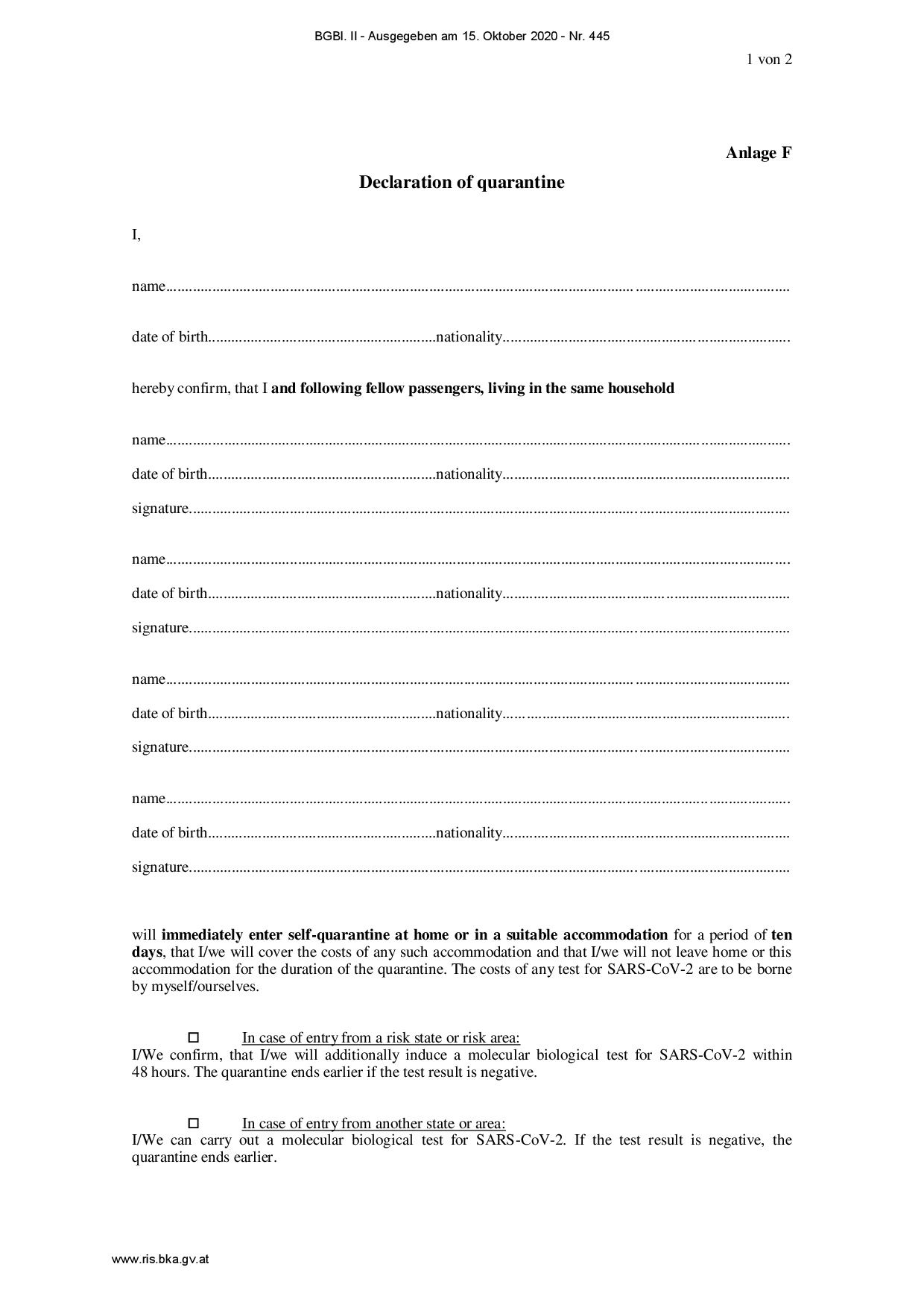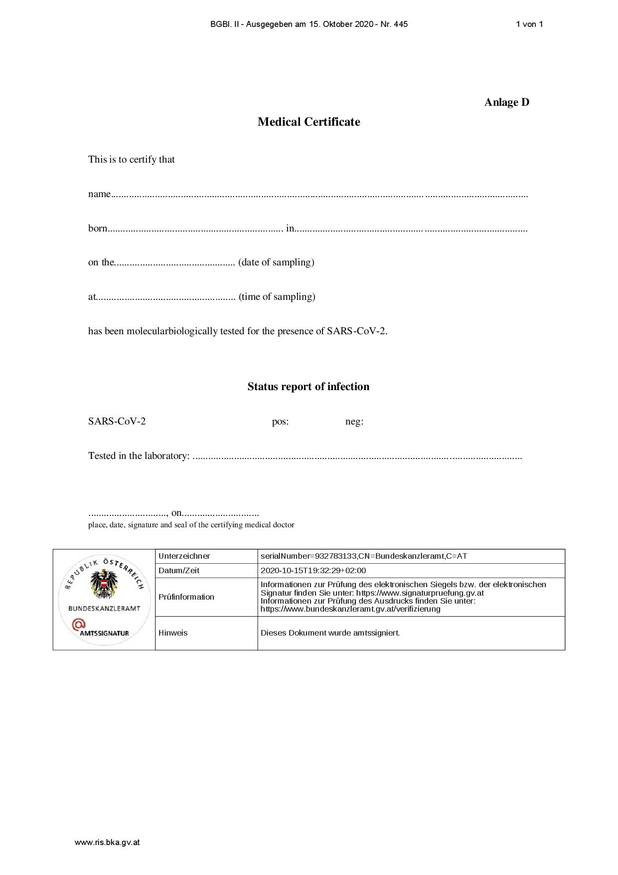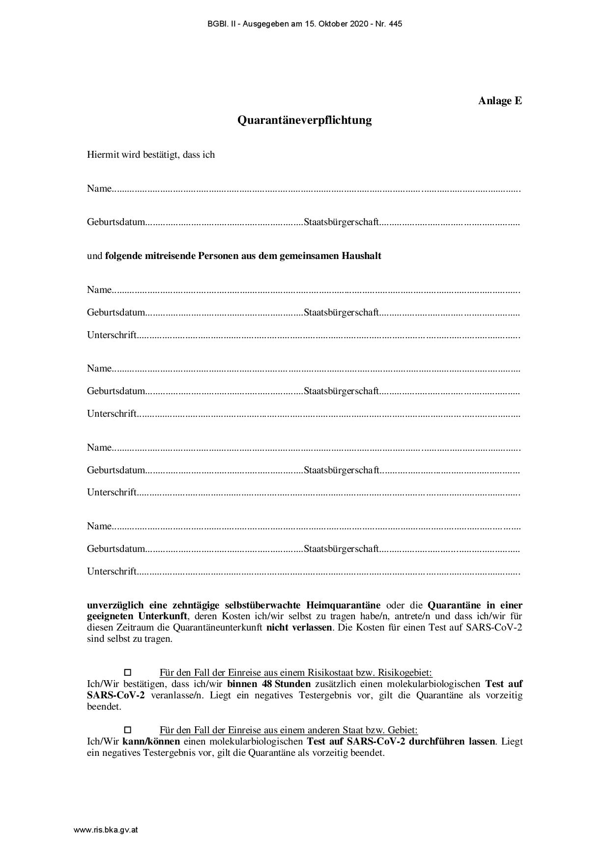El Diario Oficial Federal (Bundesgesetzblatt) de Austria ha publicado (15 de octubre de 2020) un nuevo reglamento del Ministro de Asuntos Sociales, Sanidad y Protección del Consumidor, relativo a las nuevas normas relacionadas con el COVID-19 para quienes entran en Austria.