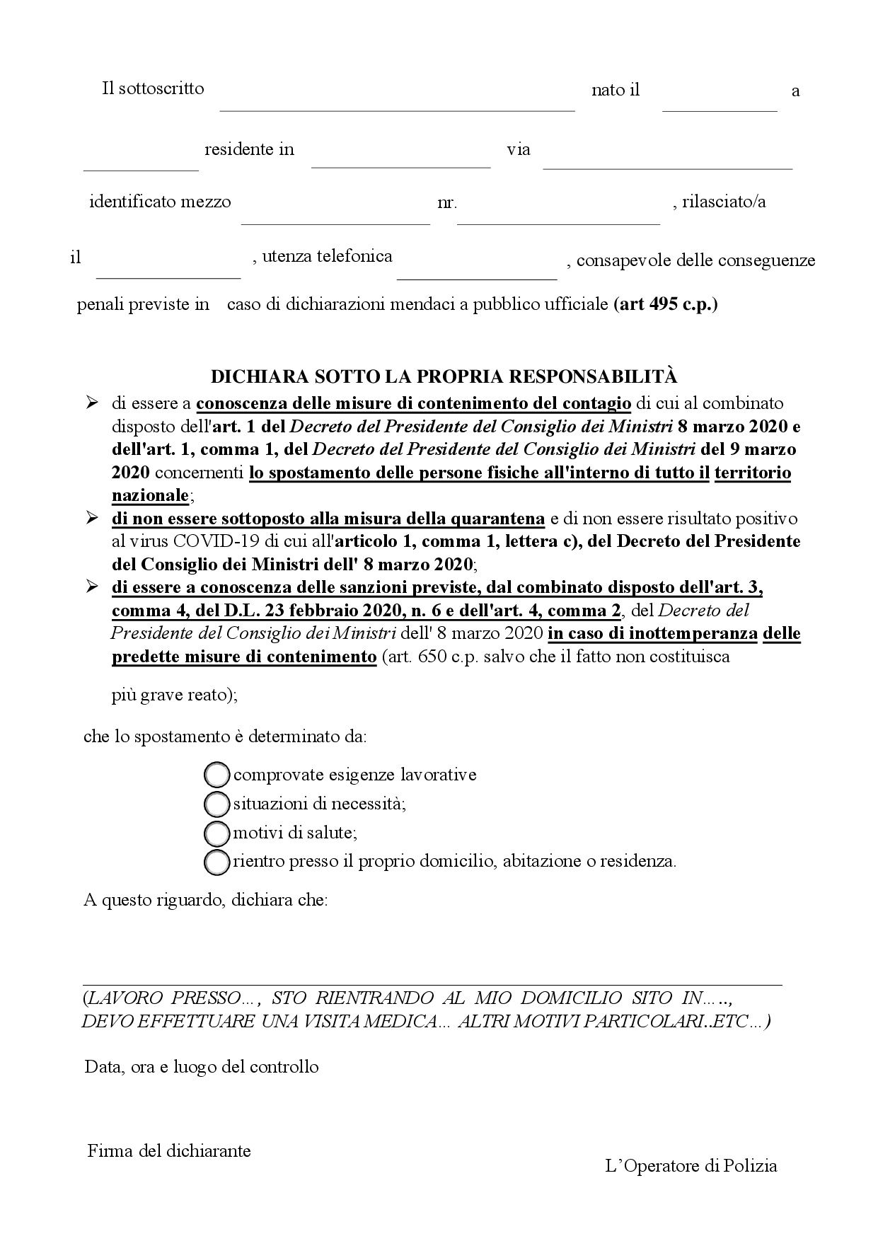 - Cerdeña: (decreto nacional y acta de ejecución regional) el transporte regular de pasajeros se suspende hasta el 25 de marzo. Las personas aún pueden llegar a la isla por razones justificadas de trabajo / salud o en caso de regresar a su lugar de residencia. Las personas que desean viajar hacia y desde Cerdeña deben completar el formulario en línea antes de viajar. La conexión aérea está garantizada solo en la ruta Cagliari-Roma; los pasajeros deben ser autorizados por las autoridades regionales de Cerdeña antes de abordar (el mismo formulario en línea debe completarse al menos 48 horas antes de la salida). Al abordar, los pasajeros deben presentar una copia impresa del formulario junto con su tarjeta de identidad y la autocertificación completa. El transporte de mercancías puede continuar siempre que las mercancías no estén acompañadas. En caso de que el contenedor no pueda separarse del vehículo de motor, el conductor puede abordar el barco. El formulario en línea y la autocertificación deben completarse.