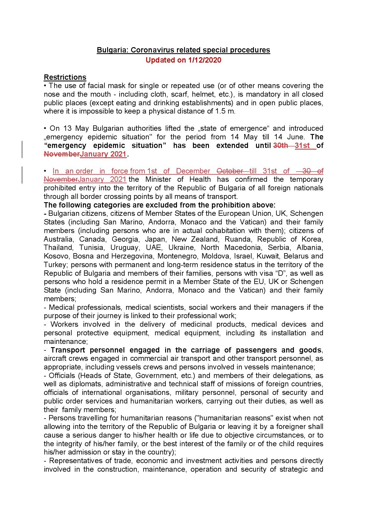 BULGARIA. ACTUALIZACIÓN MEDIDAS RESTRICTIVAS CORONAVIRUS