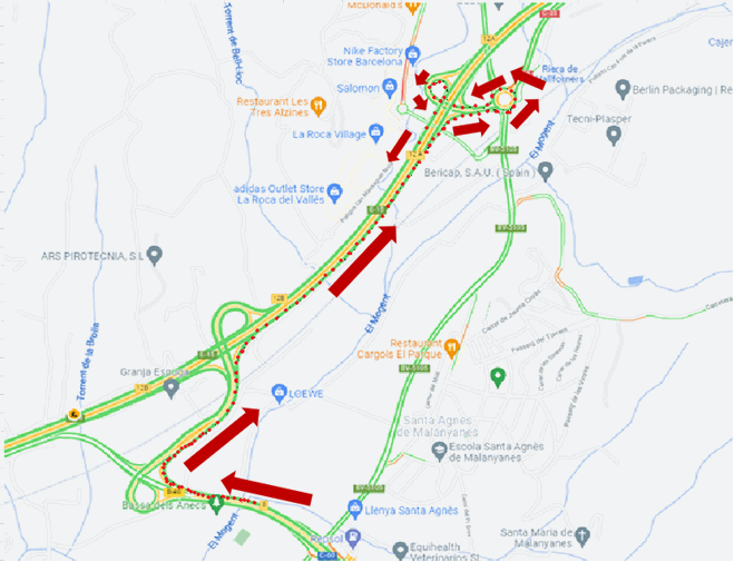 También, el mismo lunes 1 de noviembre, los camiones y autobuses que, provenientes de la C-60 y de la B-40z, se quieran incorporar a la AP-7 (enlace 12B de la AP-7), sentido Tarragona, tendrán que redirigirse a la entrada del enlace 12A, Cardedeu, según croquis adjunto.