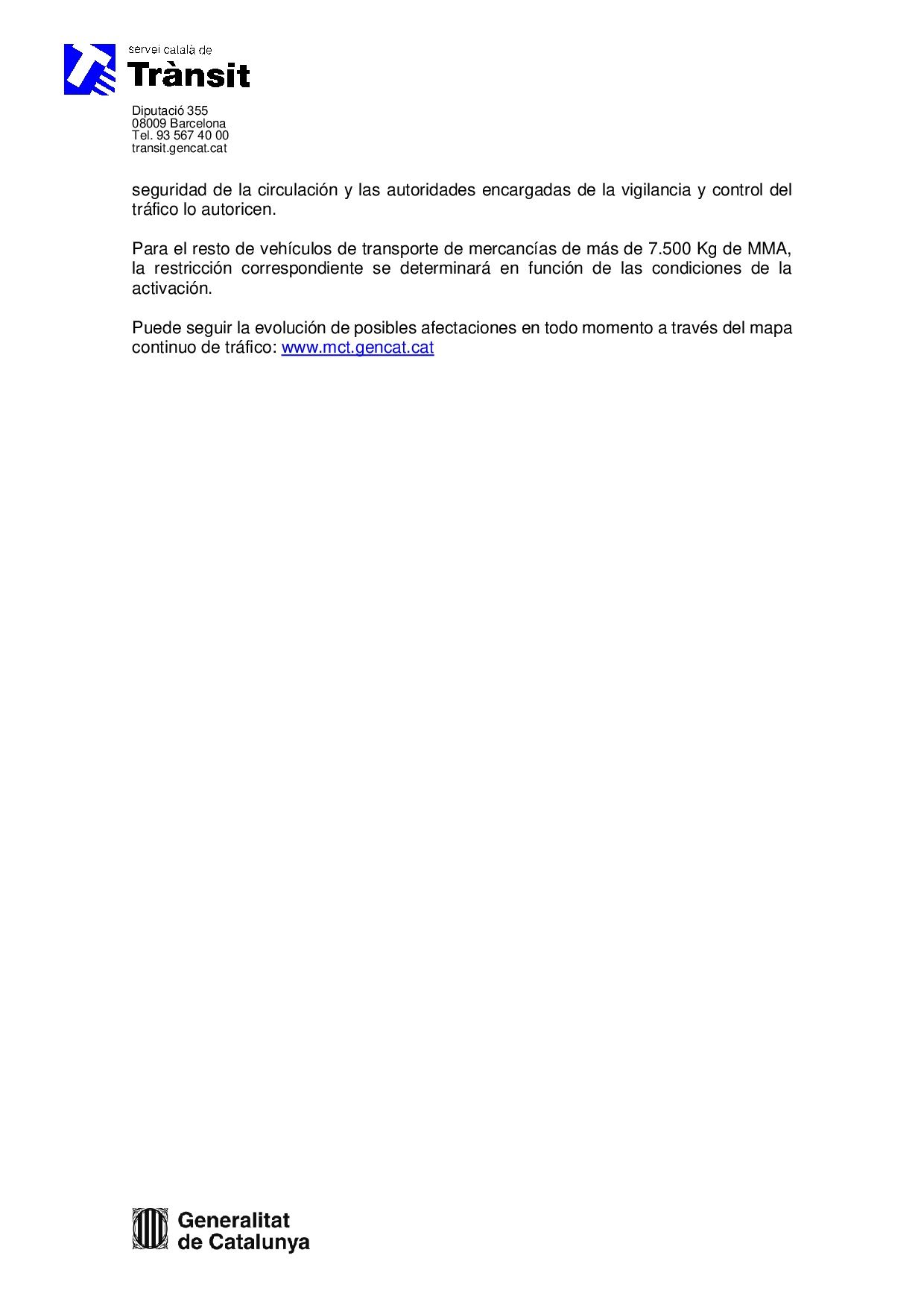 - NOTA relativa a las Restricciones por la activación del Plan especial de emergencias por riesgo de viento en Cataluña (VENTCAT), del Servei Català de Trànsit.