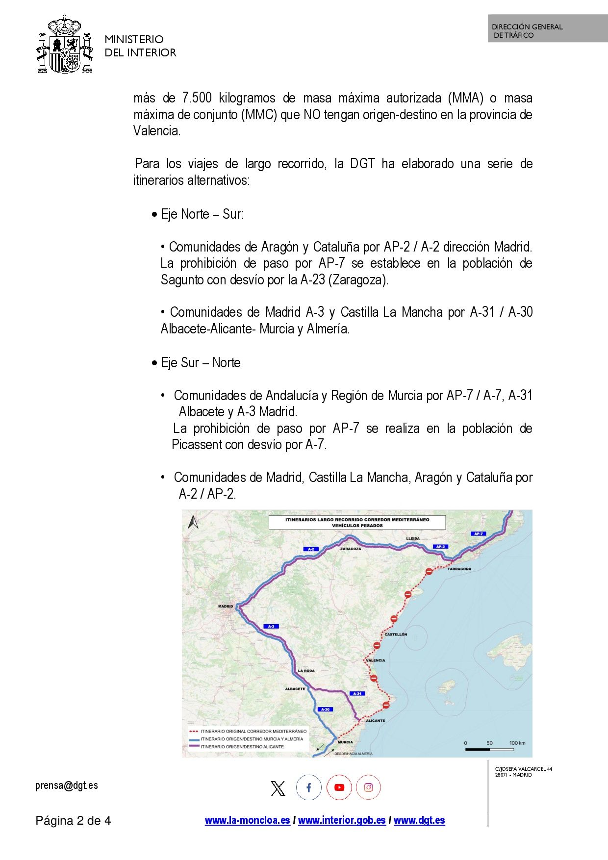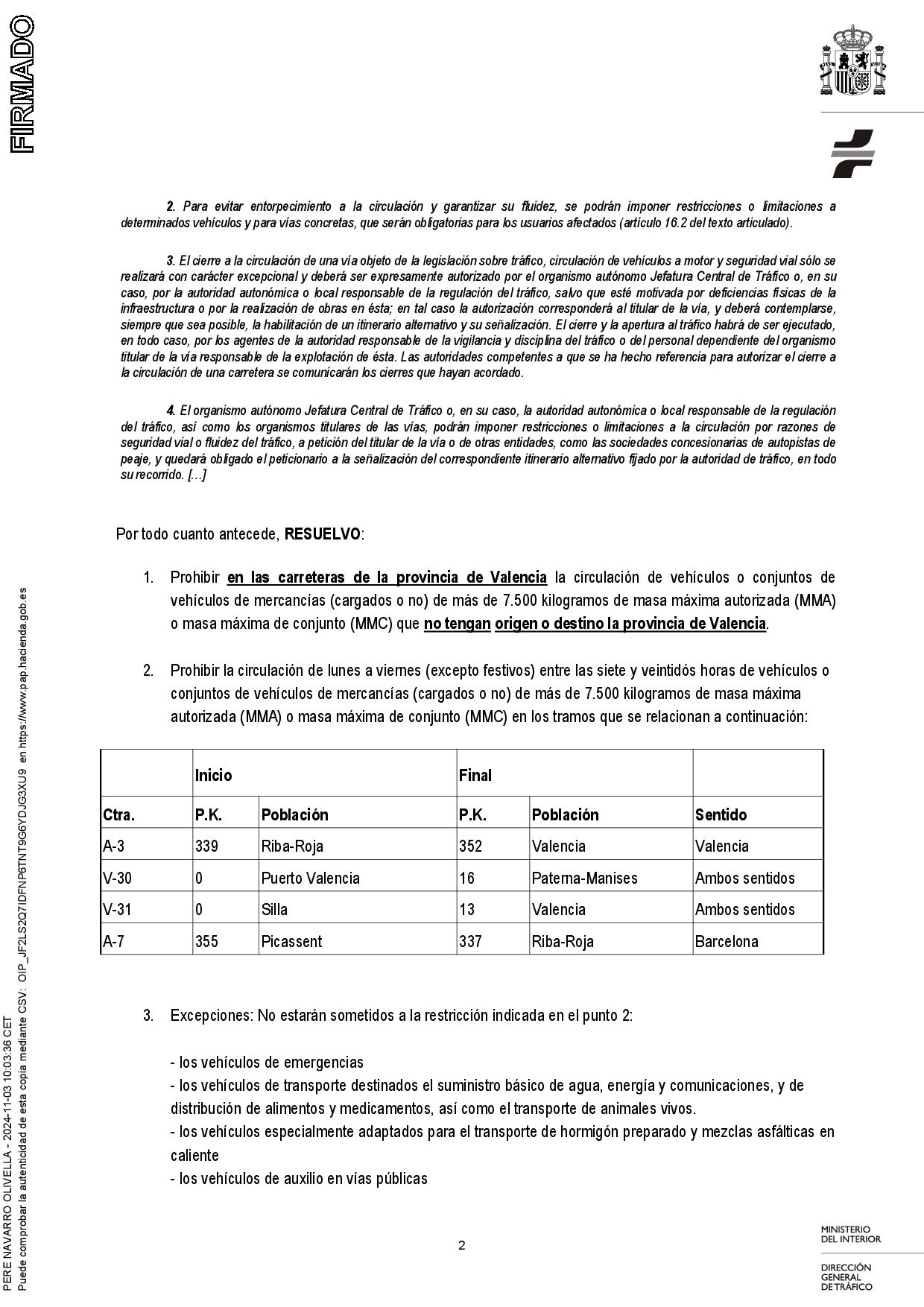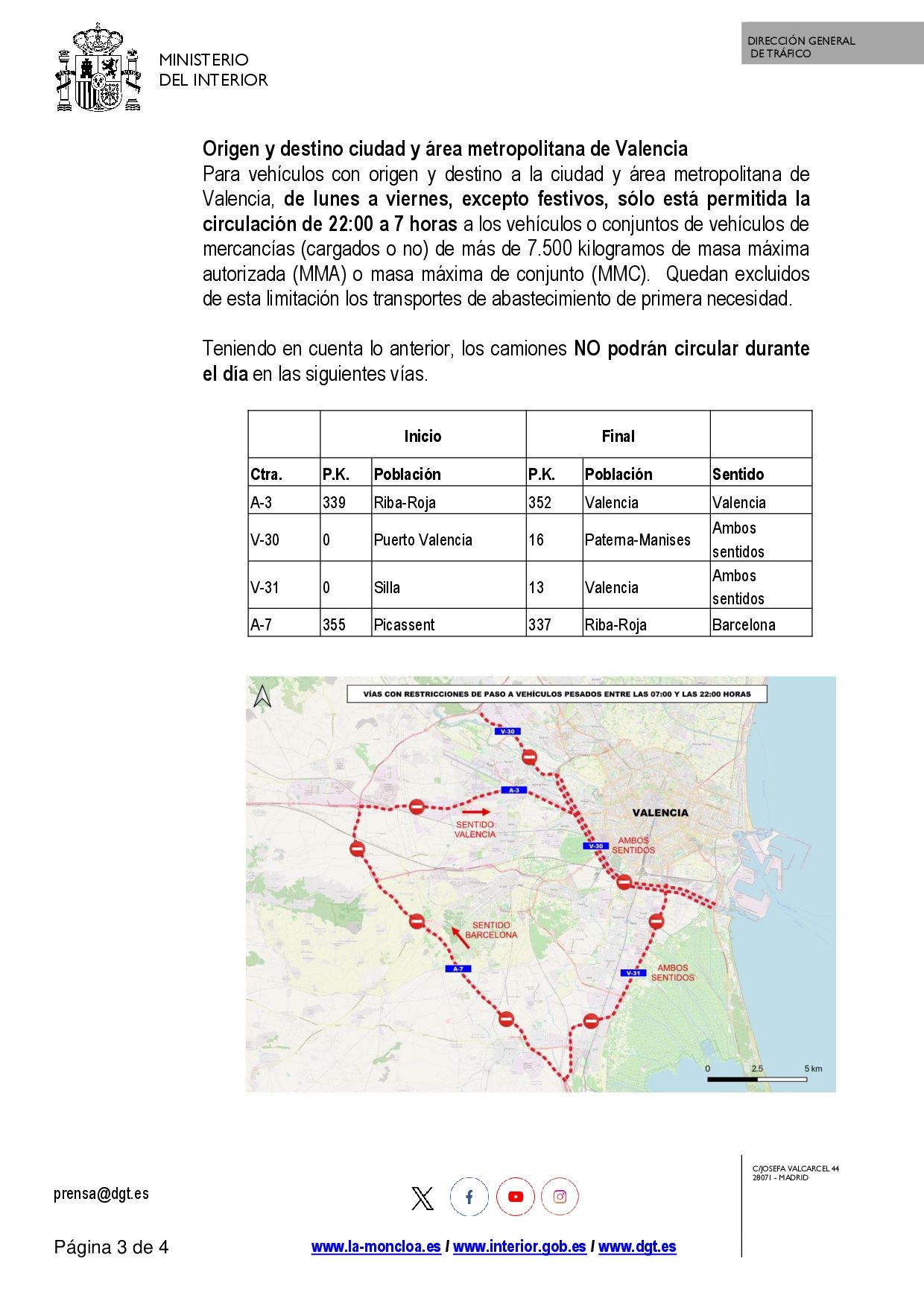 Desde la DGT se agradece la colaboración de los transportistas y su comprensión ante esta situación inédita. Son medidas temporales derivadas de las limitaciones generadas por la DANA que llevarán un seguimiento y actualización de las mismas, de modo que se puedan ir levantando hasta que se pueda retomar la normalidad en la circulación.