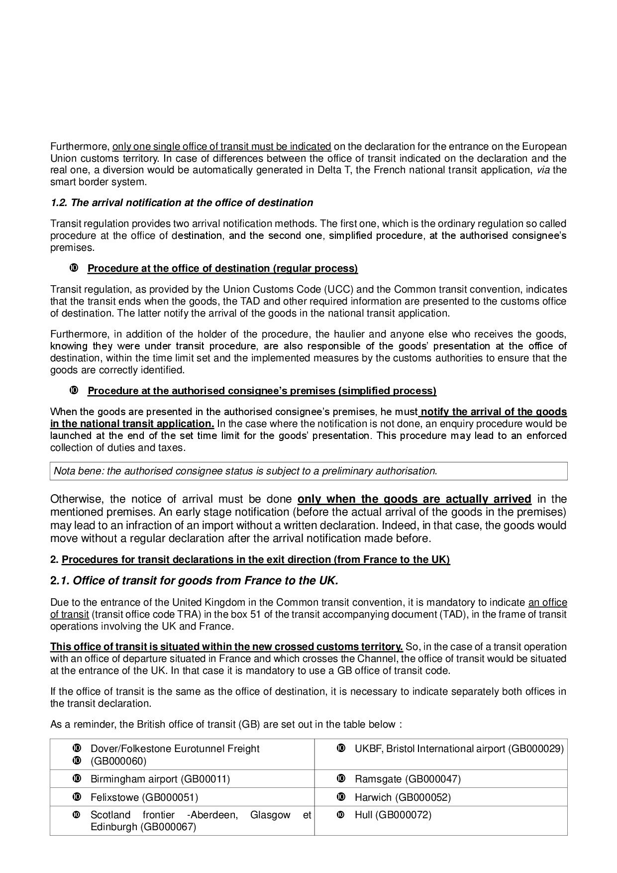 En cuanto al procedimiento de tránsito, el Reino Unido se ha convertido en Estado parte de la Convención Común de Tránsito (CTC). Por lo tanto, desde entonces se están aplicando nuevas reglas a las operaciones de tránsito desde y hacia este país.