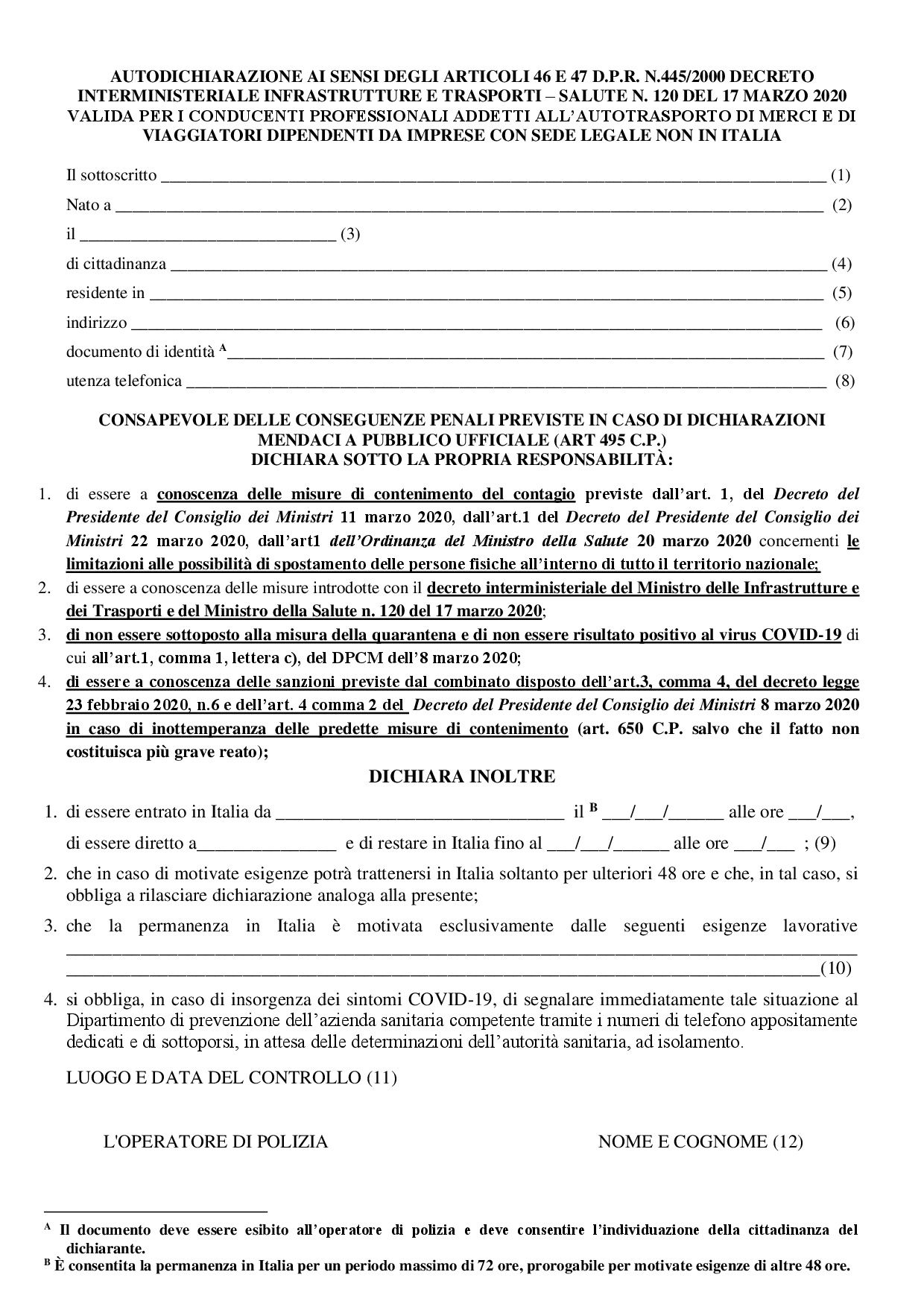 De acuerdo con el Decreto de 17 de marzo, y tal como indicábamos en nuestra información del día 19, los que se desplacen a Italia por motivos de trabajo deberán llevar cumplimentado el documento adjunto.