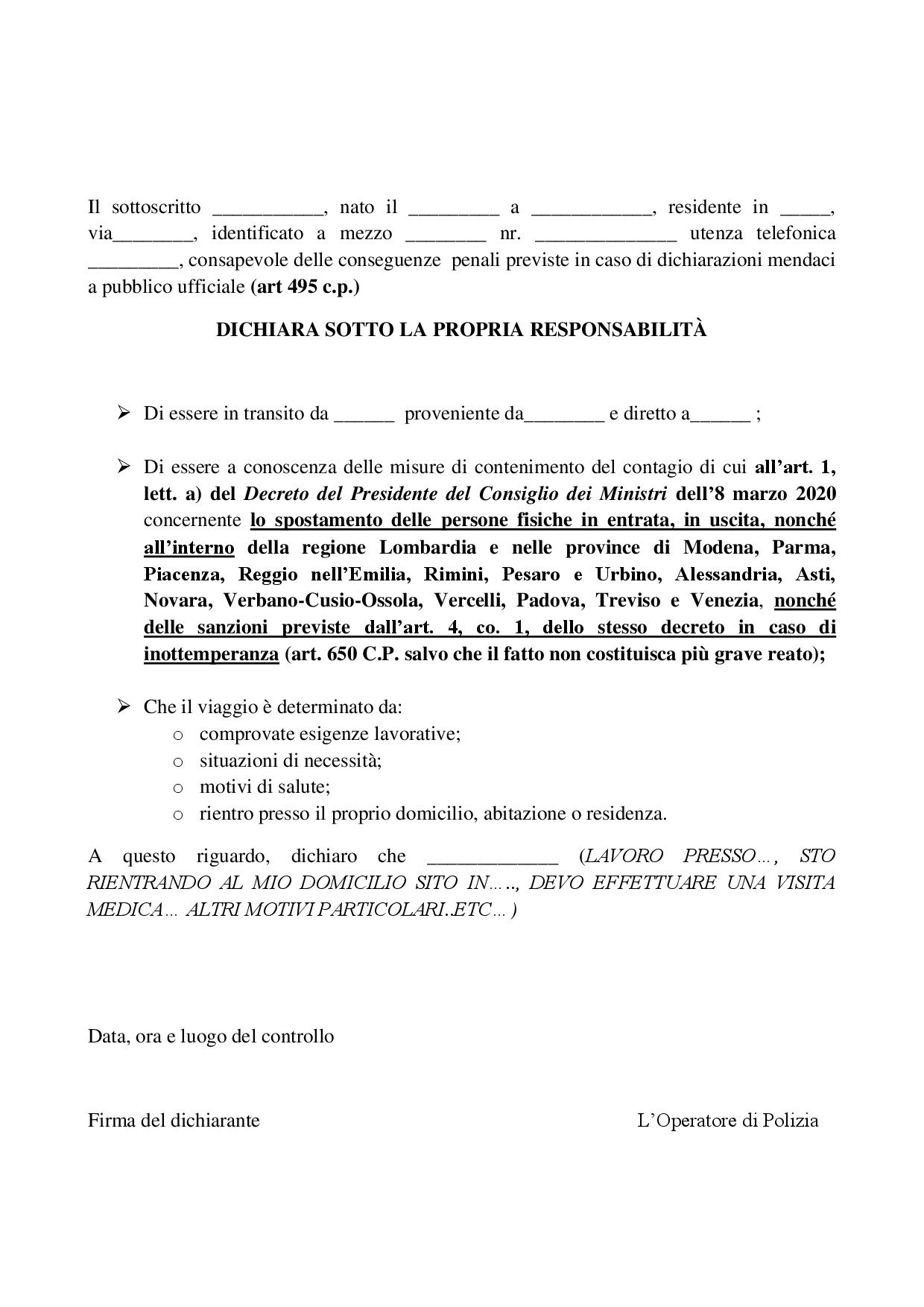 Por la información aparecida en algunos medios de comunicación se ha planteado la duda en algunas empresas sobre la documentación necesaria ante un hipotético control de carretera en Italia tras el decreto de confinamiento de población en la llamada “zona rossa” primero, y en todo el territorio italiano desde ayer. En concreto, sobre la necesidad de portar el llamado documento de auto certificación -véase el archivo adjunto- para entregarlo a los agentes.