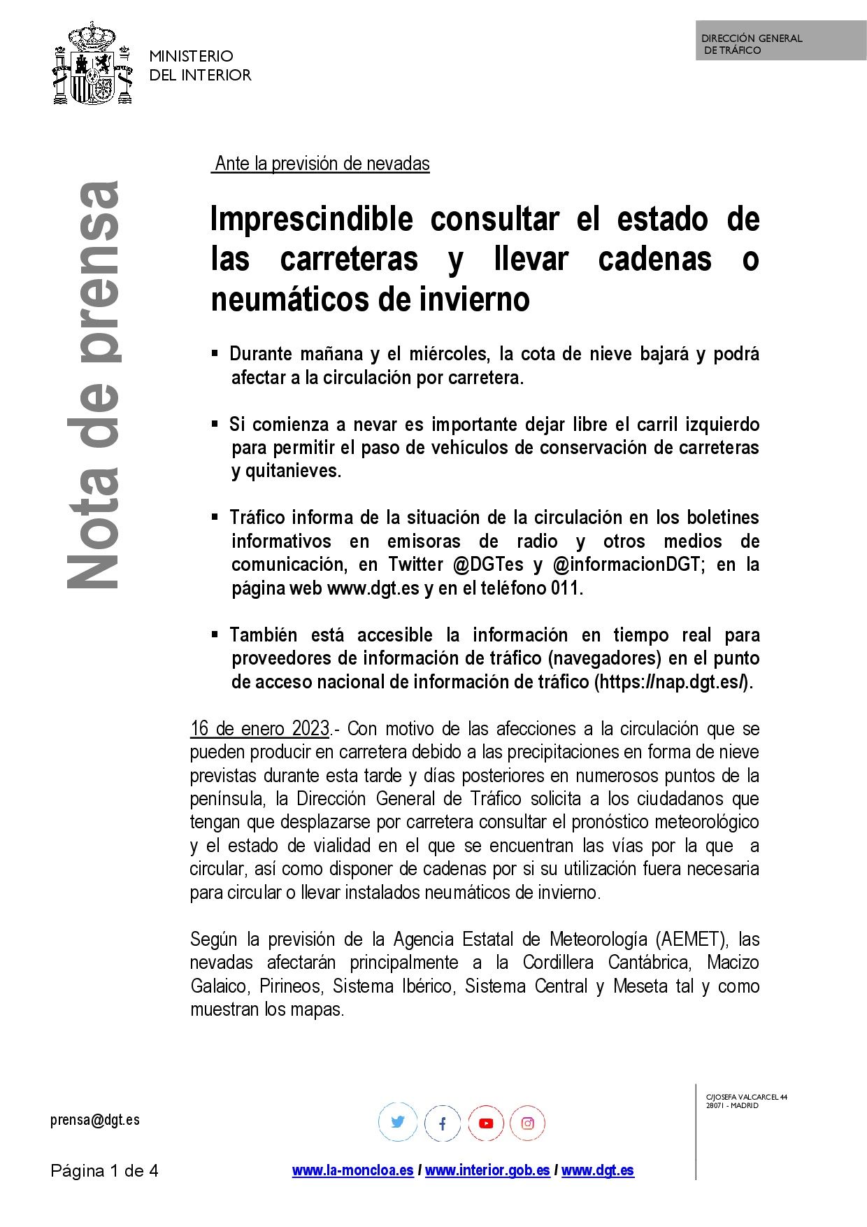 Por indicación del Director General de Tráfico le avisamos, a los efectos de que planifique sus viajes, de que el alcance del temporal de nieve abarca buena parte de nuestras carreteras.