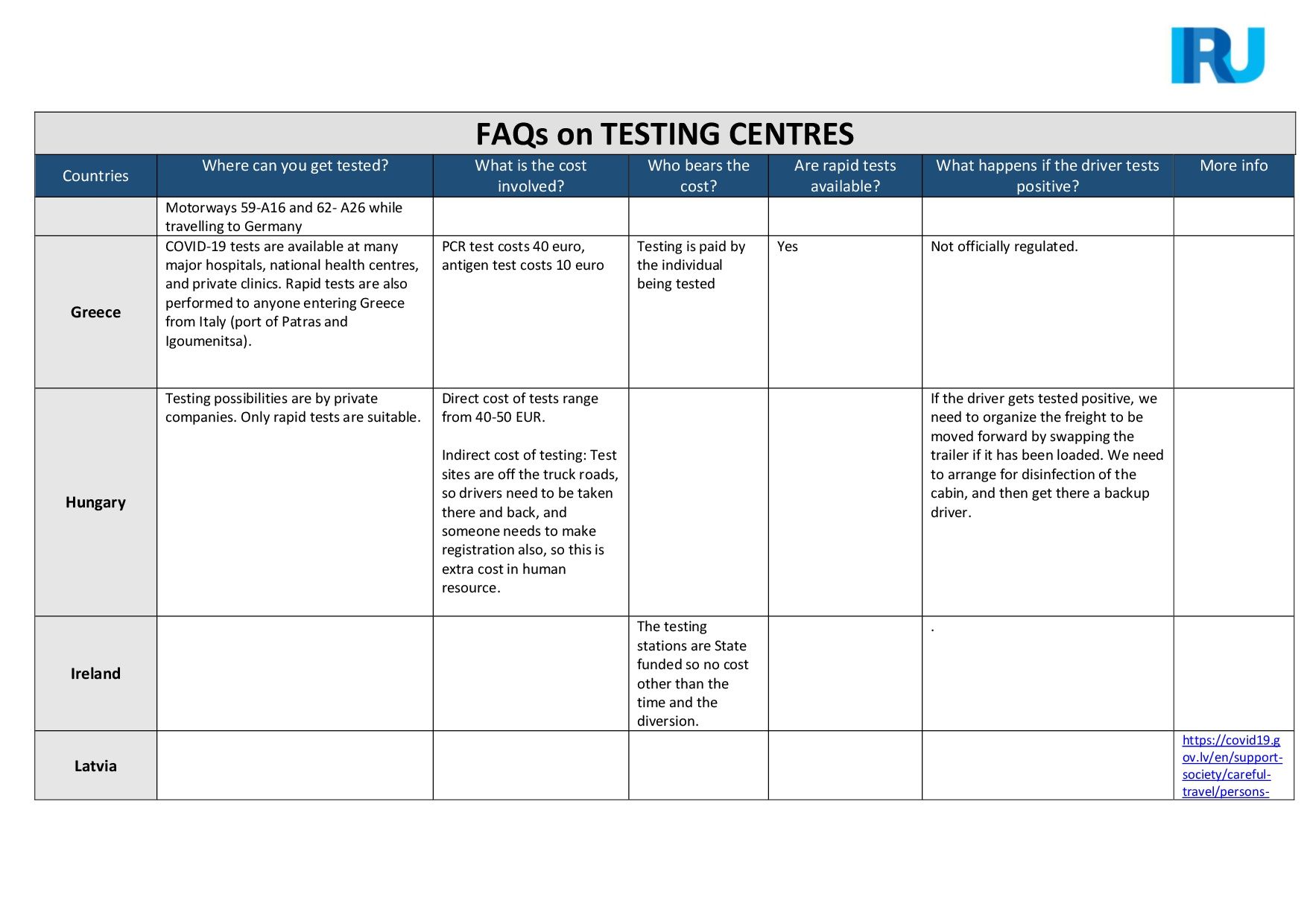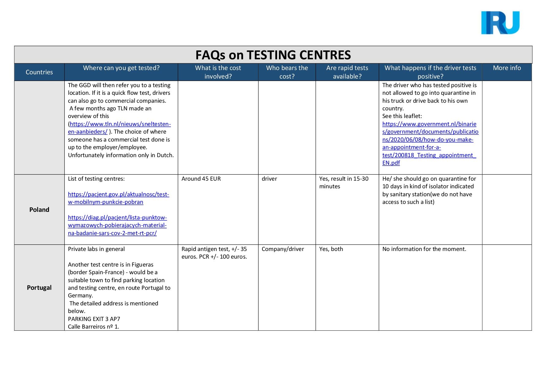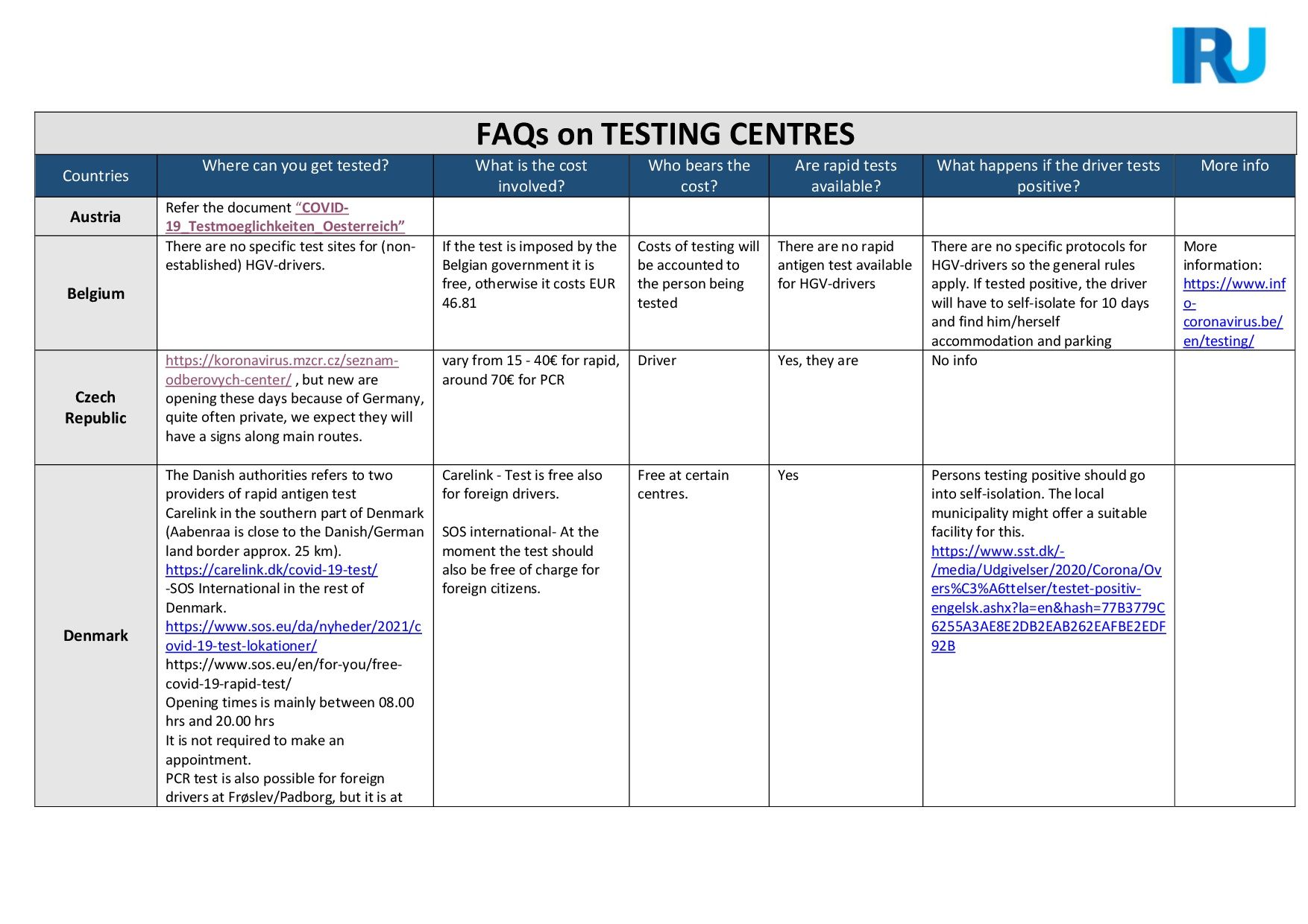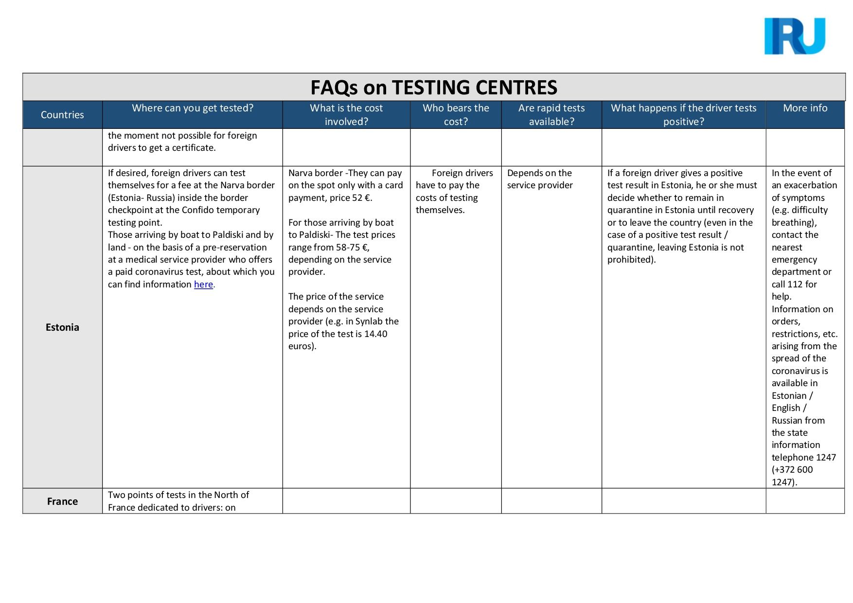 IRU, con la ayuda de sus asociaciones miembro, ha elaborado una lista detallada de preguntas frecuentes y sus respuestas sobre los centros de pruebas para conductores no establecidos en varios países de la Unión Europea.