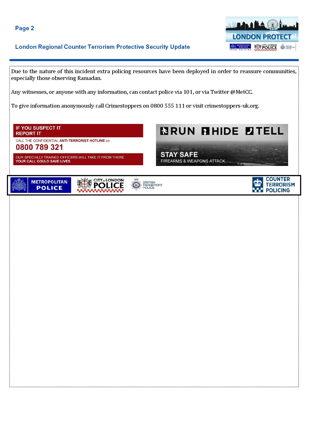 Debido a ello, las autoridades nos informan que el nivel de amenaza por un nuevo atentado terrorista en el Reino Unido está en máximo, es decir, consideran altamente probable que haya un nuevo intento de ataque terrorista en Gran Bretaña y algo menor en Irlanda del Norte.