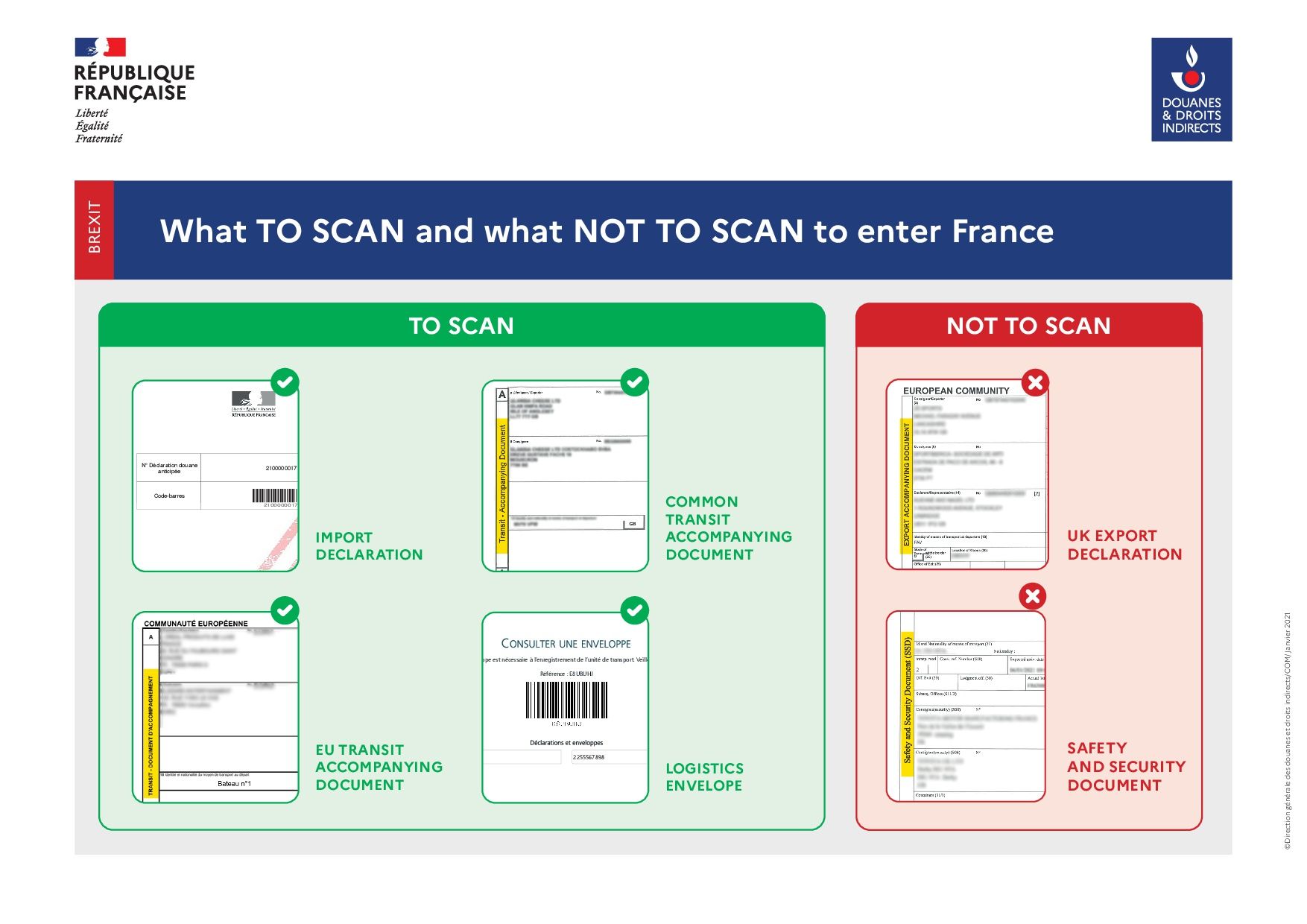 Las autoridades aduaneras francesas han emitido más orientación sobre qué documentos aduaneros escanear para poder ingresar a Francia cuando se viene del Reino Unido (ver adjunto para más detalles).