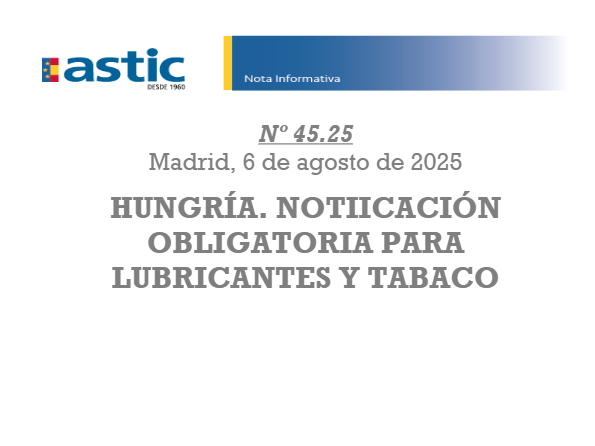 N.I. 45.25 Hungría. Notificación obligatoria para lubricantes y tabaco