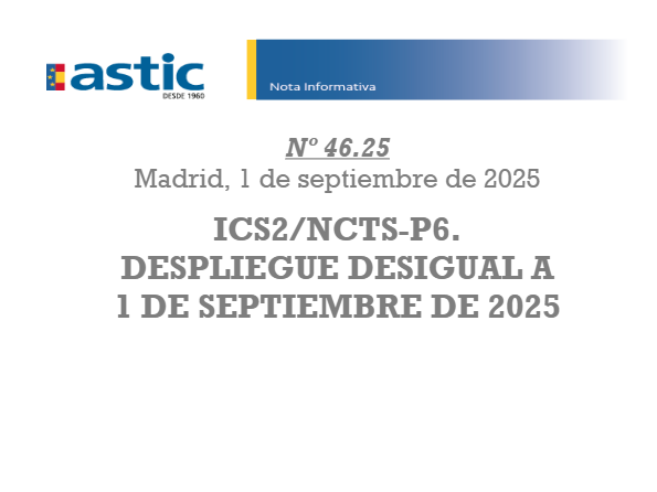 N.I. 46.25 ICS2 NCTS P6. Despliegue desigual a 1 septiembre 2025